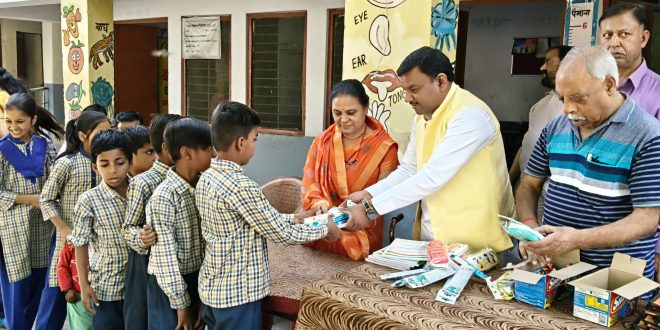 पूर्व मेयर गौरव गोयल ने राजकीय प्राथमिक विद्यालय में वितरित की पाठ्य सामग्री,शिक्षा को बताया परिवार और समाज के लिए आवश्यक